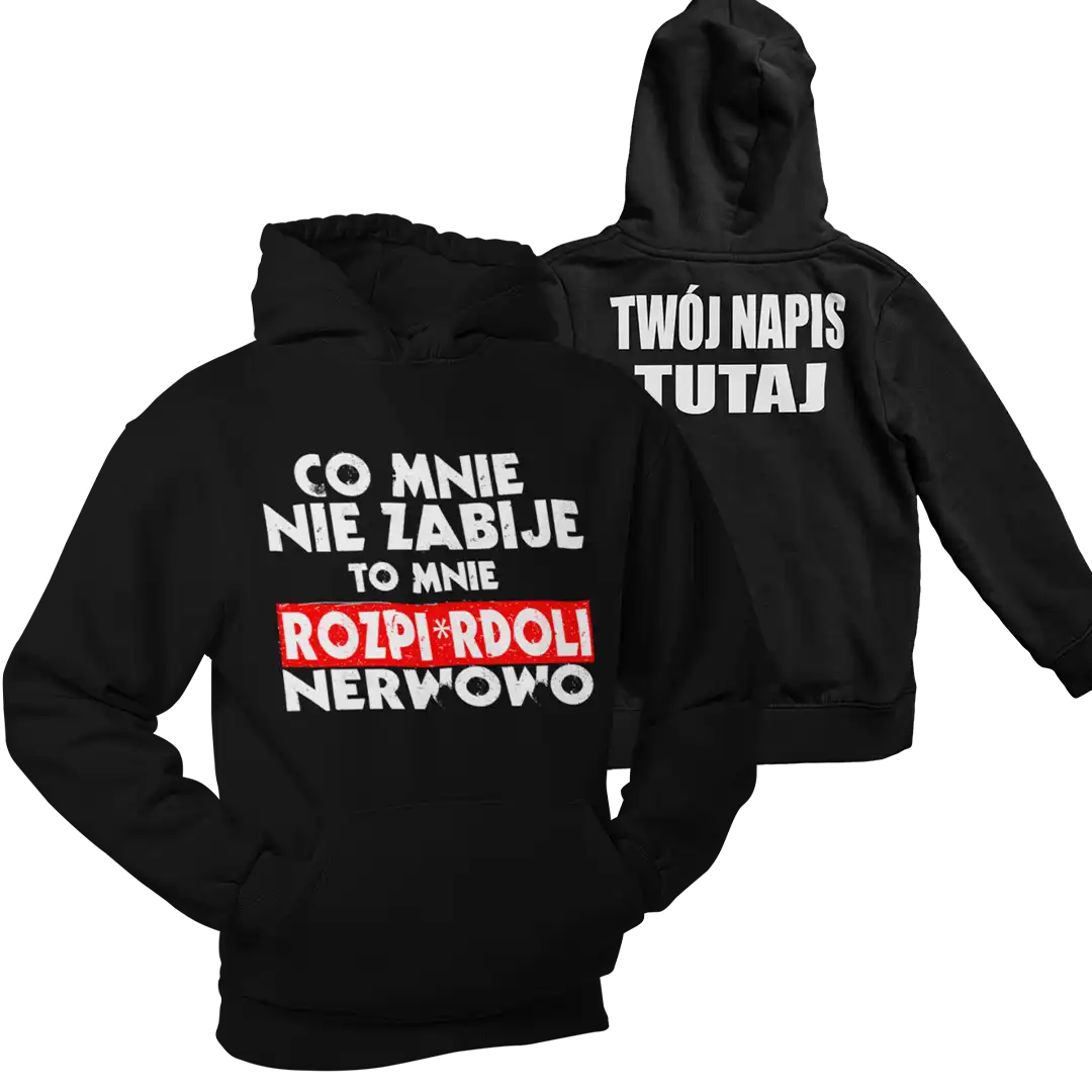 Bluza dla rolnika „ co mnie nie zabije to mnie rozp*erdoli nerwowo”+ możliwy własny napis/nazwa gospodarstwa/imię na plecach za dopłatą. By dodać własny napis wpisz go w polu wyżej i zaznacz opcję własny napis na plecach na tak 🙂.