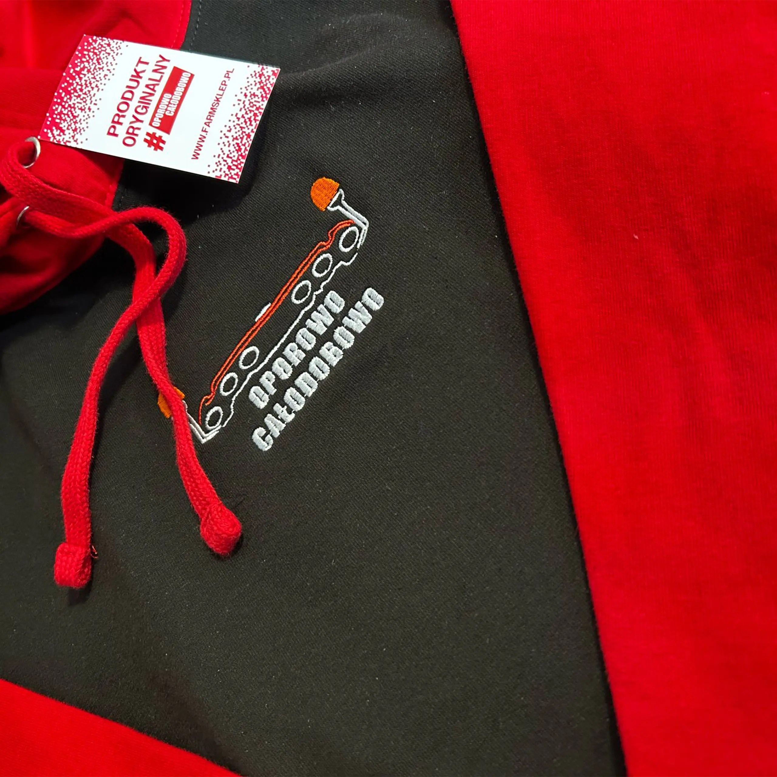 Poznaj oryginalną bluzę marki #oporowocałodobowo w zupełnie nowym wydaniu FS3! Ten model to połączenie solidności, wygody i wyjątkowego stylu, który od razu rzuca się w oczy. Dwukolorowa bluza w klasycznym zestawieniu czerni i intensywnej czerwieni świetnie komponuje się z trwałym haftem komputerowym, który został starannie naniesiony na wysokości klatki piersiowej.
