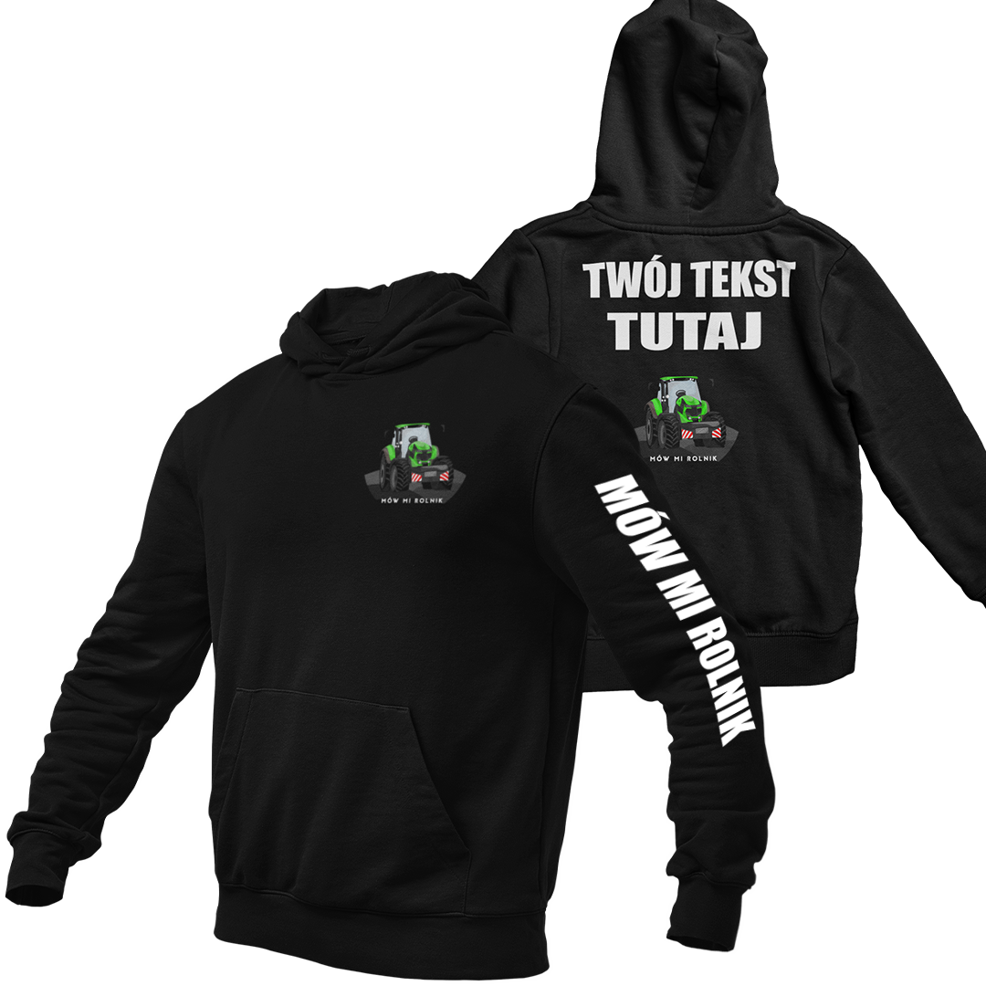 Bluza dla rolnika „MÓW MI ROLNIK DEUTZ-FAHR” + możliwy własny napis/nazwa gospodarstwa/imię na plecach za dopłatą. By dodać własny napis wpisz go w polu wyżej i zaznacz opcję własny napis na plecach na tak 🙂.