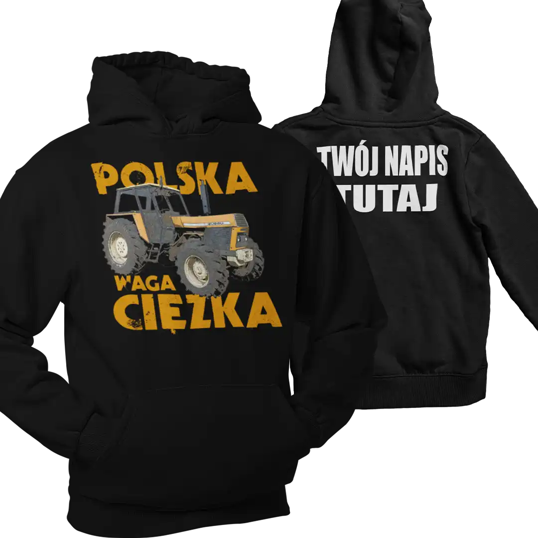 Bluza dla rolnika „ POLSKA WAGA CIĘŻKA „ + możliwy własny napis/nazwa gospodarstwa/imię na plecach za dopłatą. By dodać własny napis wpisz go w polu wyżej i zaznacz opcję własny napis na plecach na tak 🙂.
