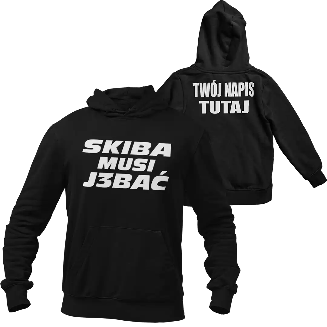 Bluza dla rolnika „skiba musi j3bać” + możliwy własny napis/nazwa gospodarstwa/imię na plecach za dopłatą. By dodać własny napis wpisz go w polu wyżej i zaznacz opcję własny napis na plecach na tak 🙂.