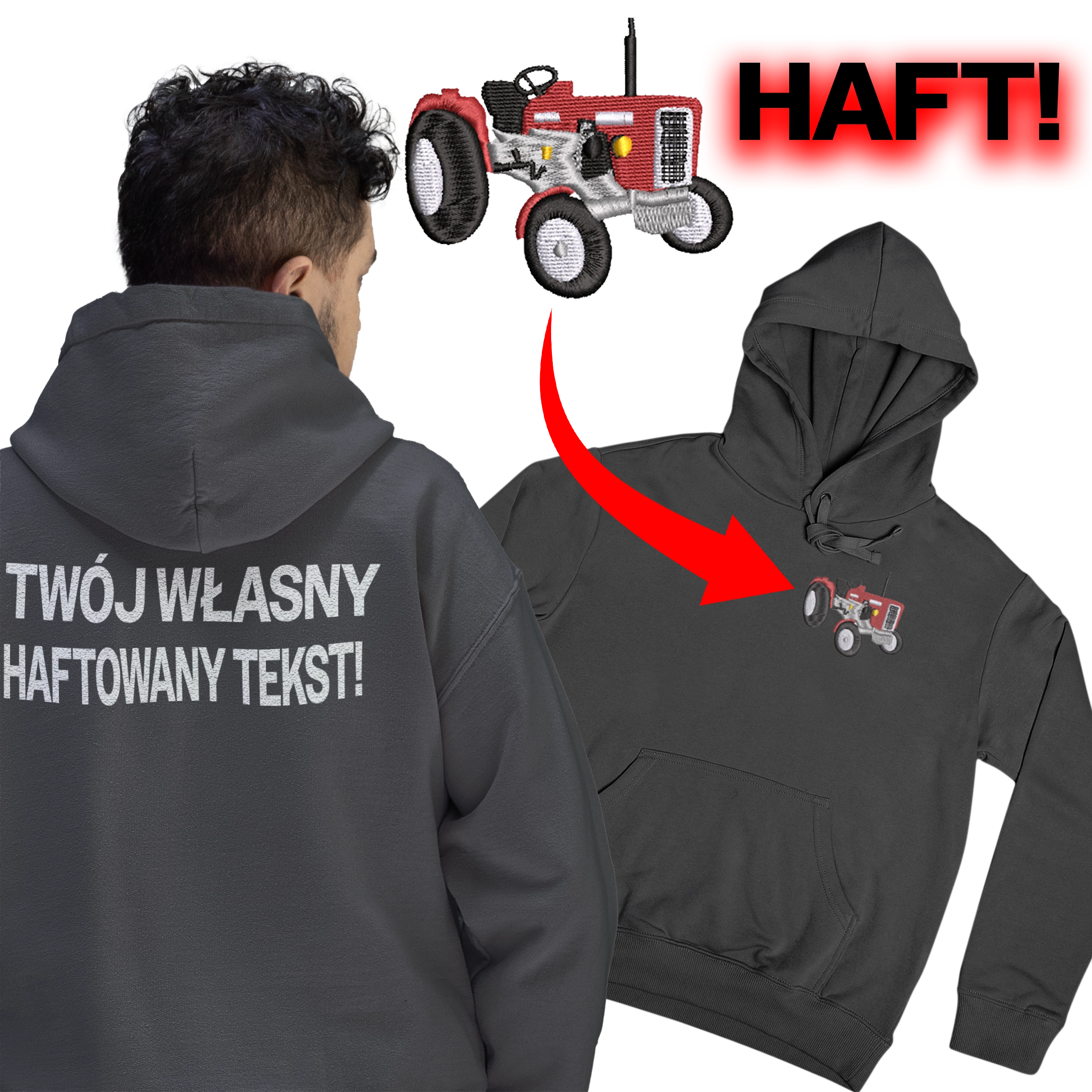 Idealna propozycja dla właścicieli, sympatyków ursusa c-360. Haft wykonany jest na lewej piersi, jego wymiar to ok 12cm szerokości, wysokość jest proporcjonalna. Jesli zdecydujesz się na własny napis na plecach my wykonamy go również w technologii haftu komputerowego.
