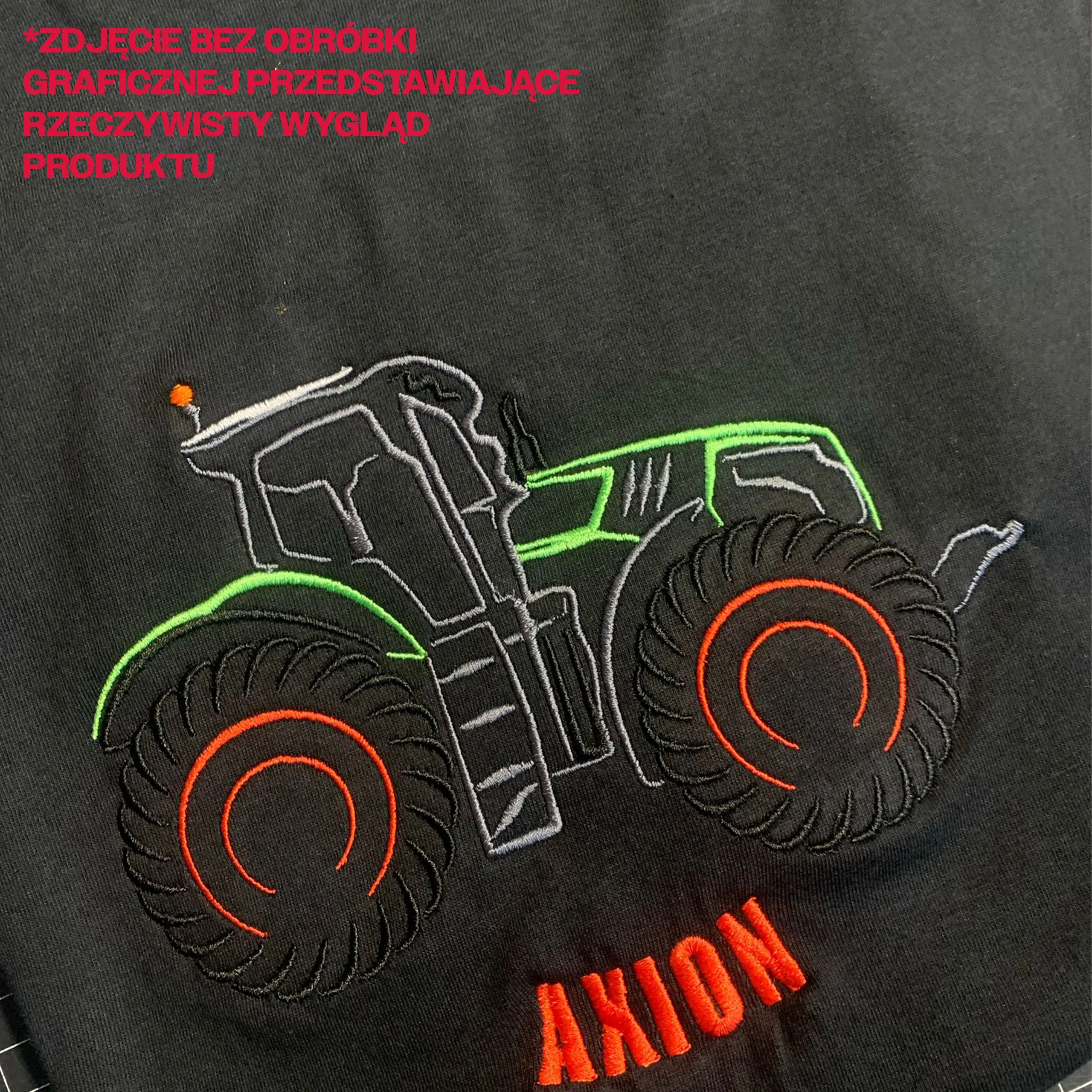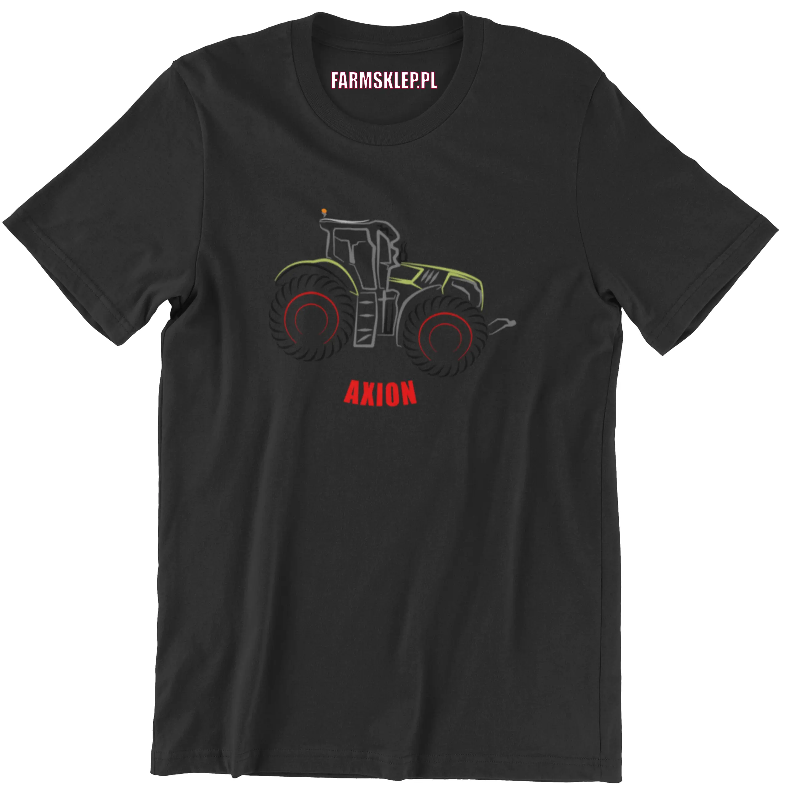 Koszulka inspirowana modele ciągnika claas axion. Ze zdobieniem wykonanym w technologii haftu komputerowego.