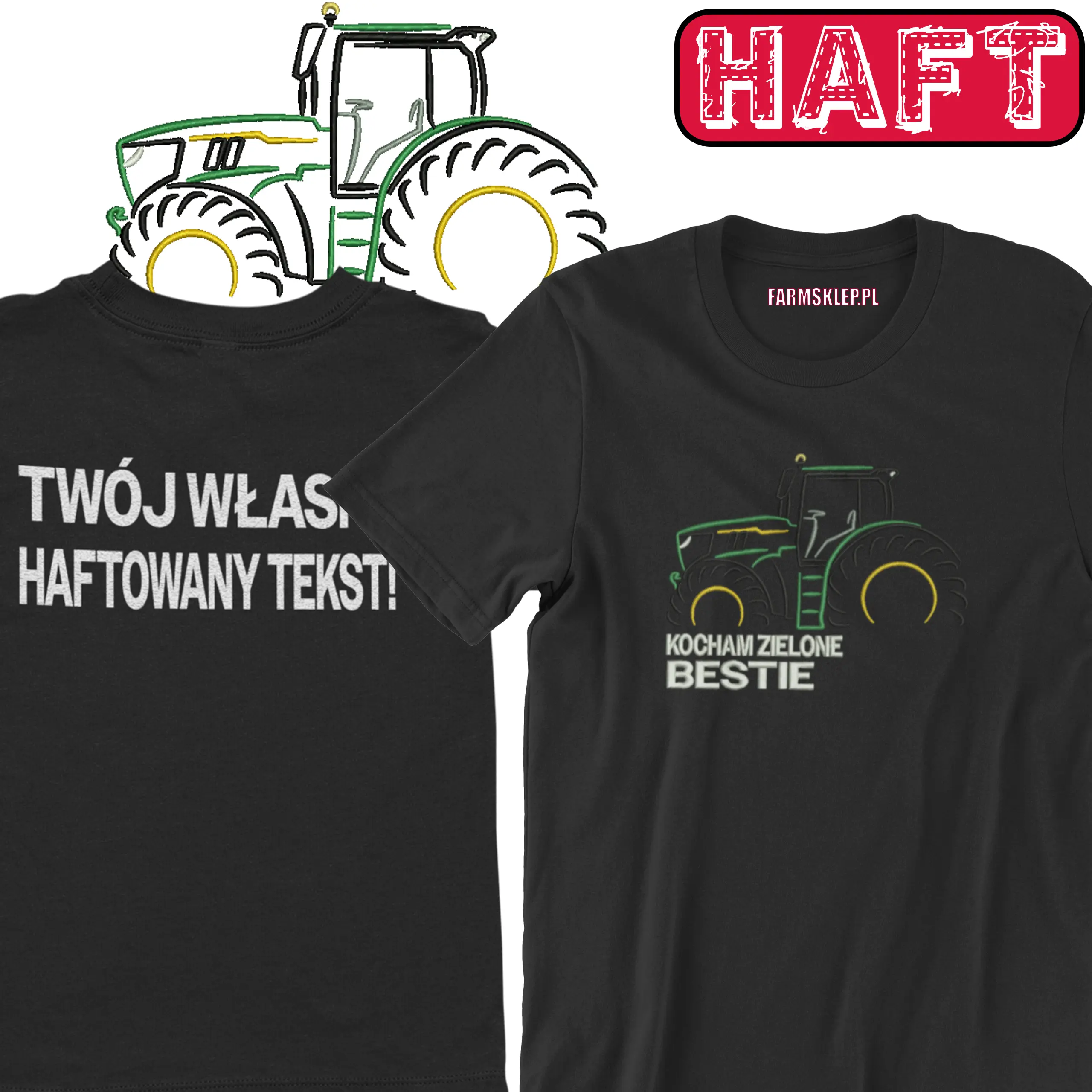 Koszulka john deere kocham zielone bestie HAFT . Ze zdobieniem wykonanym w technologii haftu komputerowego.