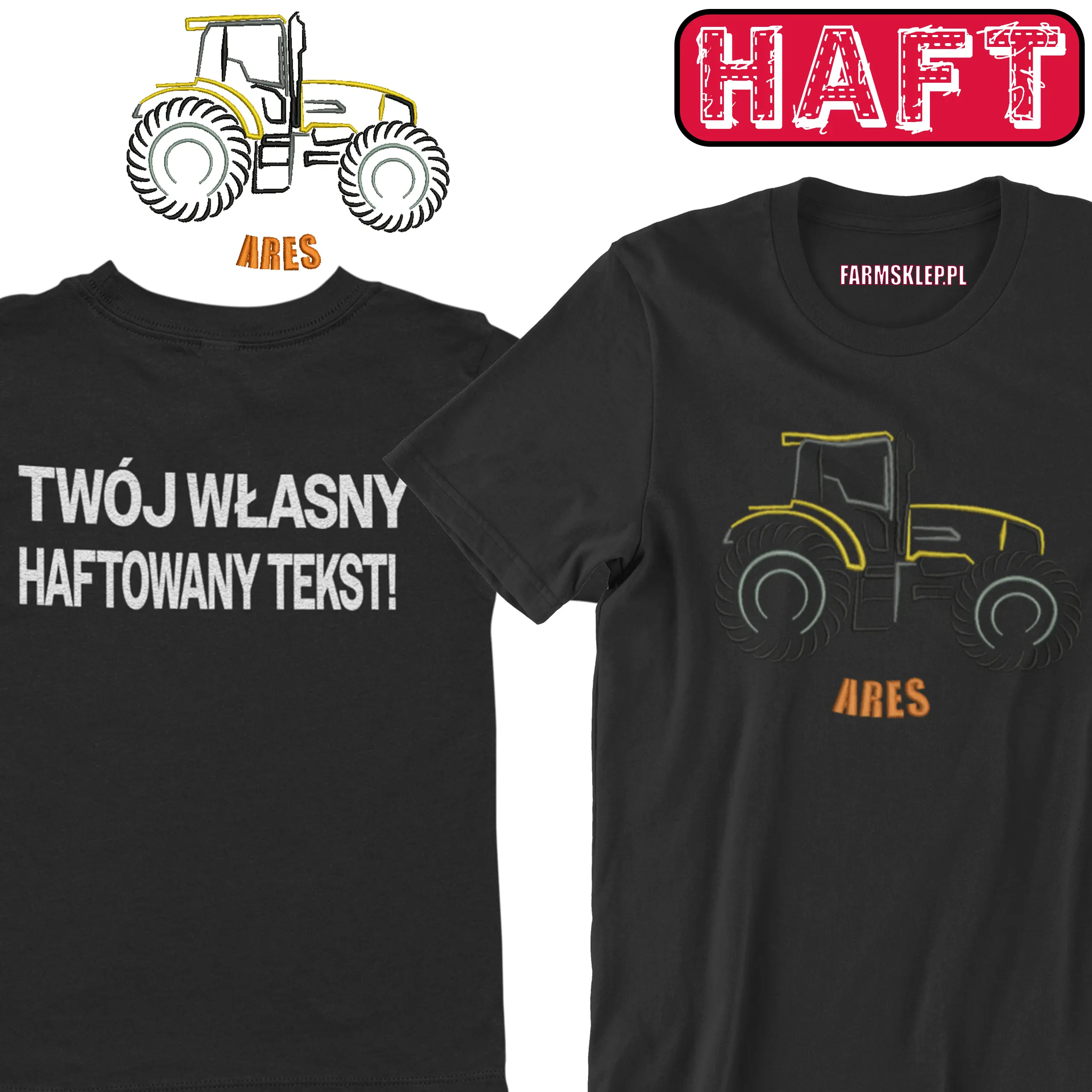 Przepiękna koszulka z kultowym ciągnikiem rolniczym renault ares. Ze zdobieniem wykonanym w technologii haftu komputerowego.