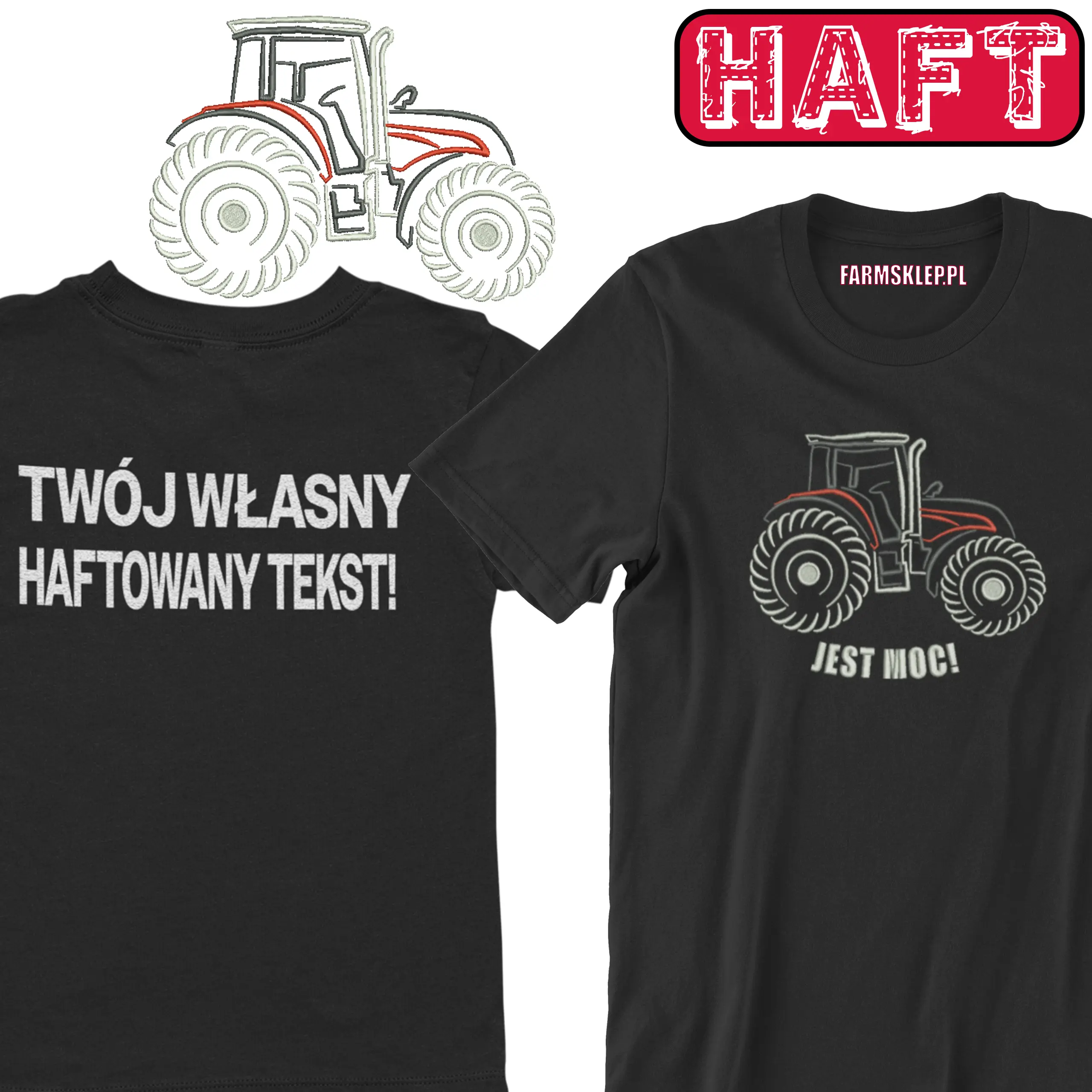 Idealna propozycja dla właścicieli, sympatyków marki steyr . Haft wykonany jest na środku, jego wymiar to ok 22cm szerokości, wysokość jest proporcjonalna. Dodaj własny haft na tyle koszulki. Koszulka jest w pełni personalizowana. Stwórz koszulkę z własnym haftem na tyle. Haft na koszulce dodaje prestiżu oraz czyni ją niezniszczalną.