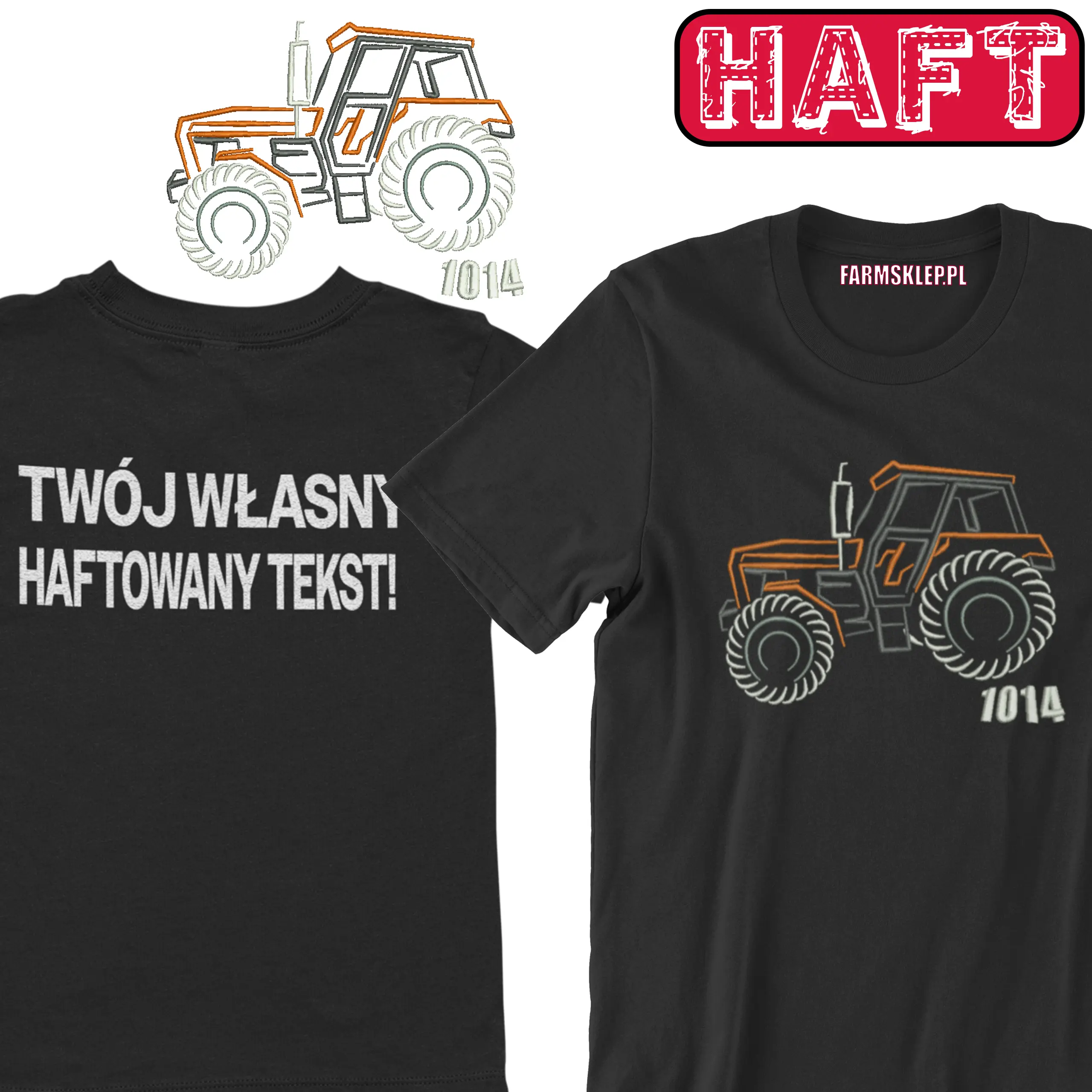 Idealna propozycja dla właścicieli, sympatyków ciągnika ursus 1014. Haft wykonany jest na środku, jego wymiar to ok 22cm szerokości, wysokość jest proporcjonalna. Jesli zdecydujesz się na własny napis na plecach my wykonamy go również w technologii haftu komputerowego.