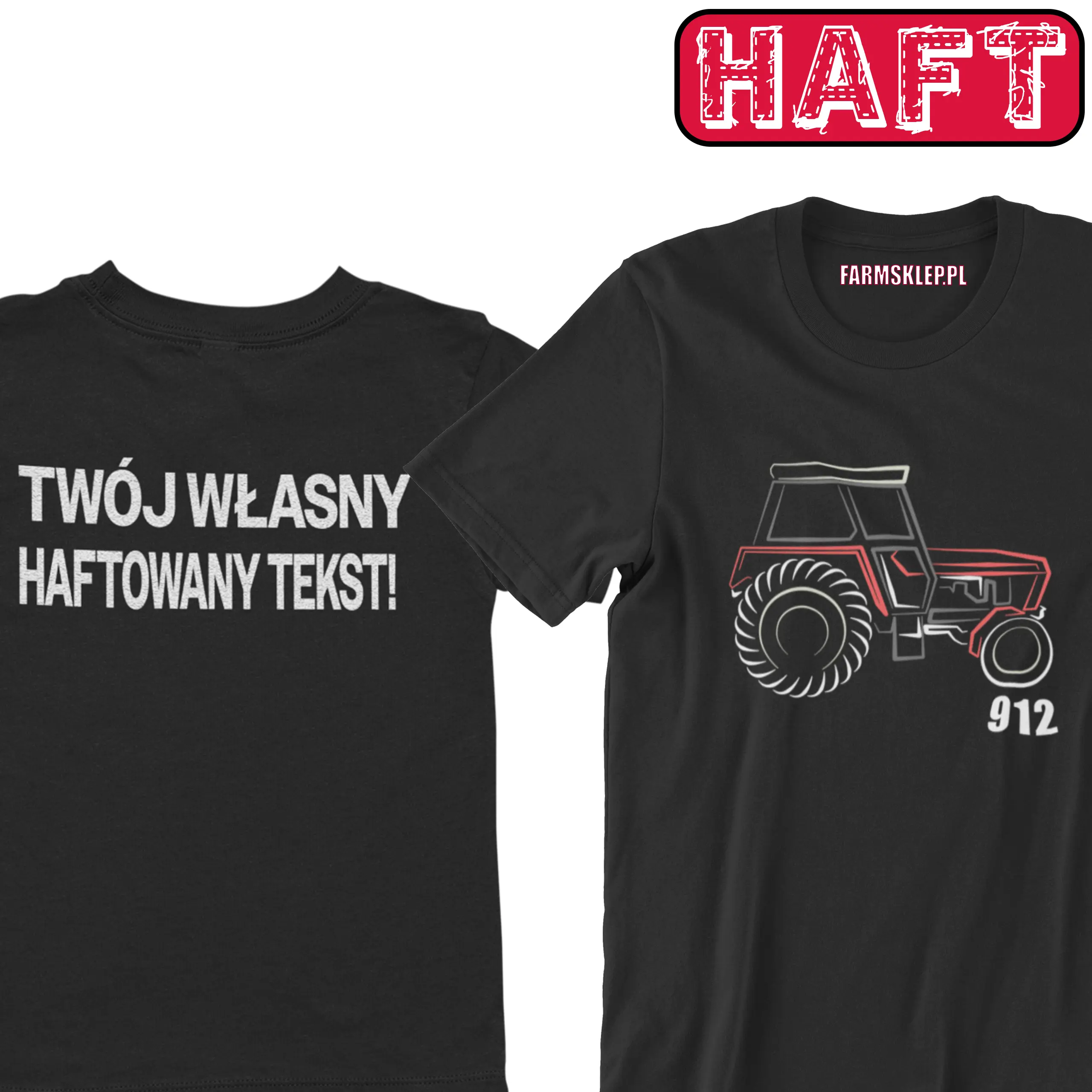 Idealna propozycja dla właścicieli, sympatyków ciągnika ursus 912. Haft wykonany jest na środku, jego wymiar to ok 22cm szerokości, wysokość jest proporcjonalna. Jesli zdecydujesz się na własny napis na plecach my wykonamy go również w technologii haftu komputerowego.