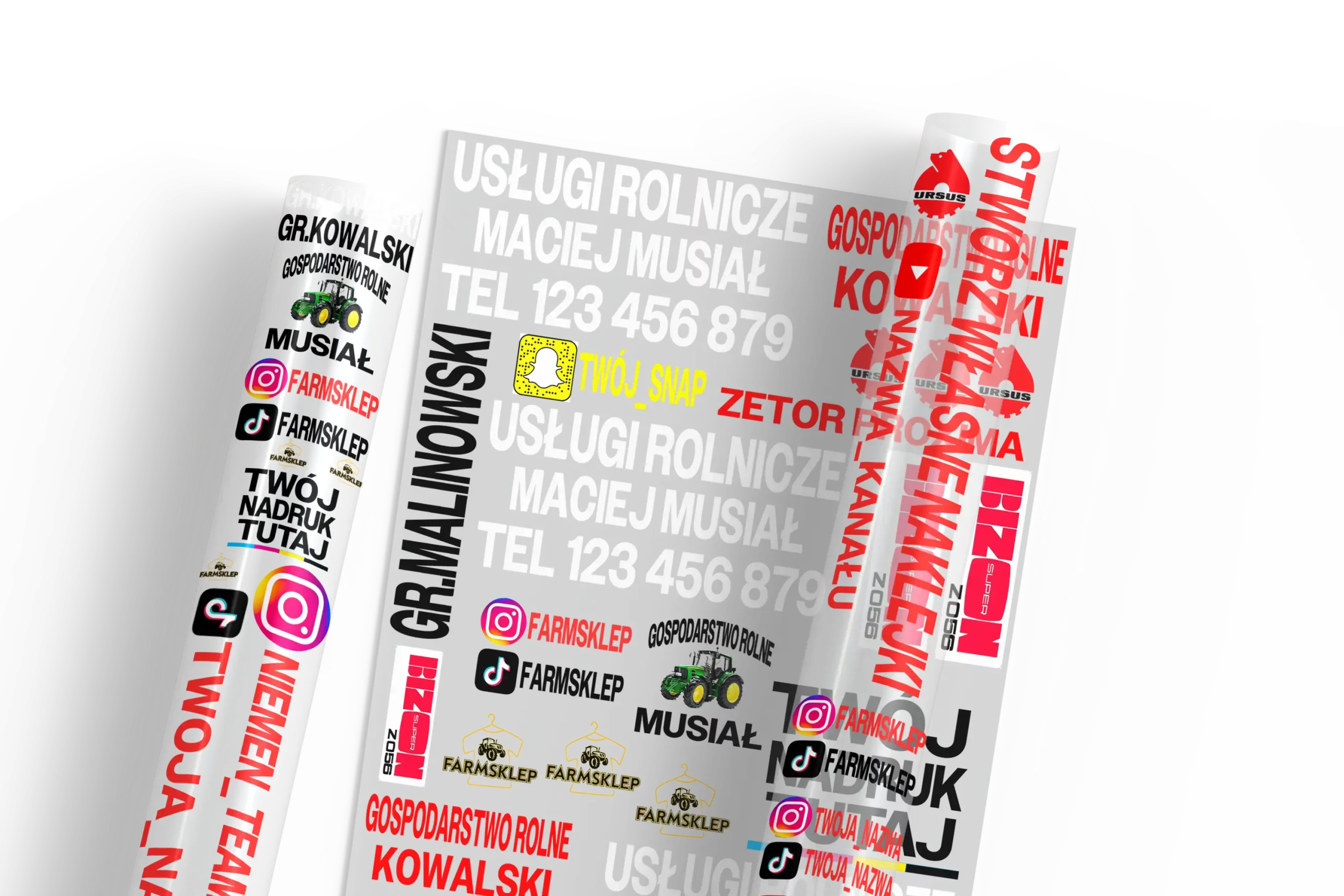 Zapraszamy cię również do skorzystania z naszego kreatora w którym zamówisz naklejkę z własnym logiem/tekstem- nazwą gospodarstwa, imieniem, nazwą TikToka czy instagram, dosłownie z czym chcesz. Zobacz sam jakie to proste!