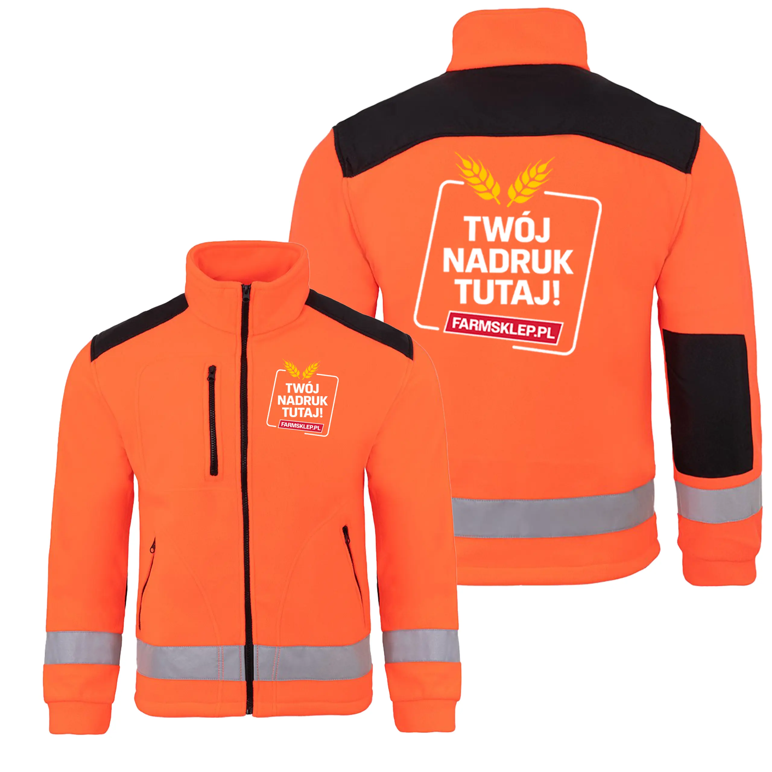 Ciepły polar ostrzegawczy o wysokiej widoczności z możliwością wykonania nadruku full color lub haftu komputerowego. Doskonały jako odzież robocza, firmowa lub outdoorowa na chłodniejsze warunki.